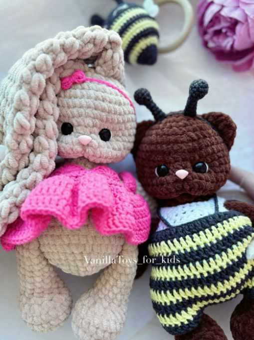 В МК «Гардером МиМи» входит 3 образа - Платье с бантиком - Костюм «Ромашка» - Костюм «Пчелка» (розовый комбезик связан по этому же описанию)